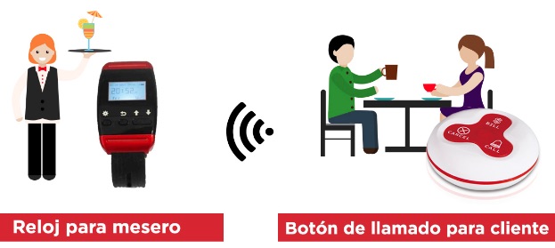 Se coloca un botón en cada una de las mesas del restaurante y cuando el comensal necesita del mesero, presiona el botón y el mesero recibe la señal en un reloj de pulso con vibración, luz y sonido en donde le indica la mesa que en ese momento requiere el servicio y se dirige a atender al comensal, esto hace sentir al comensal bien al recibir calidad en la atención.