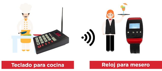 En el momento en que está lista una orden de alimentos en cocina, en ese momento el encargado de cocina presiona el número de mesero por medio de un teclado que emite una señal de radiofrecuencia y el mesero la recibe por medio de un reloj que le indica que tienen una orden en cocina lista para llevar a la mesa correspondiente. Y es justamente solo en ese momento en que el mesero puede pasar por la orden para entregar a sus comensales, de esa manera el mesero permanece más tiempo y atento para atender a sus comensales y poder captar mas comandas de sus clientes.